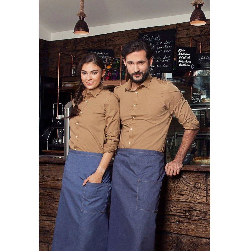 Zástera  bistro jeans  1892 Georgia Karlowsky. Vintage modrá barva. Vyrobeno z 65 % polyesteru a 35 % bavlny. Keprová vazba. Rozměr 105x90 cm. Zavinovačka v módním džínovém stylu s páskem ze stejného materiálu. Kontrastní prošívání dodává originální nádech a speciální prýmky na opasku zvyšují odolnost. Na levé straně zavinovačky je našita funkční kapsa o rozměrech 17,5 x 19 cm.  Vhodné pro průmyslové praní a chemické čištění. Nebělit. Vhodné pro žehlení při max. 150 ° C a sušení při max. 60 °C