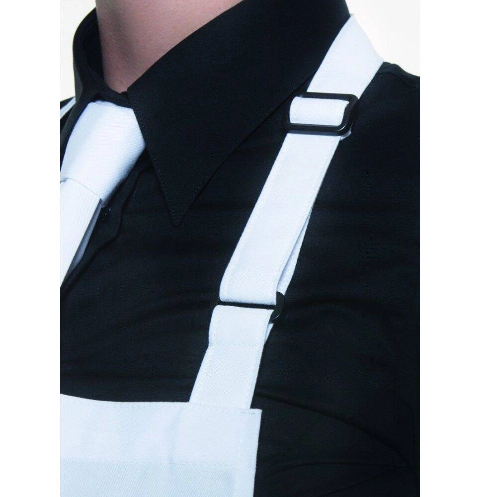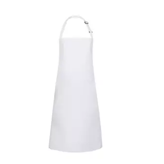 Vodotěsná zástěra na okovech s přezkou Basic od Karlowsky. Bílá barva. Vyrobeno v 100 % polyester. . Rozměry 72x86 cm. Zástěra s popruhy ze stejného materiálu, které mají extra ochranu ve švech. Délku popruhu na šle lze nastavit pomocí přezky (délka až 70 cm). Zástěra má také všitou kapsu se dvěma přihrádkami (40 x 20 cm). Lze prát v pračce. Nesušit v pračce ani nebělit.