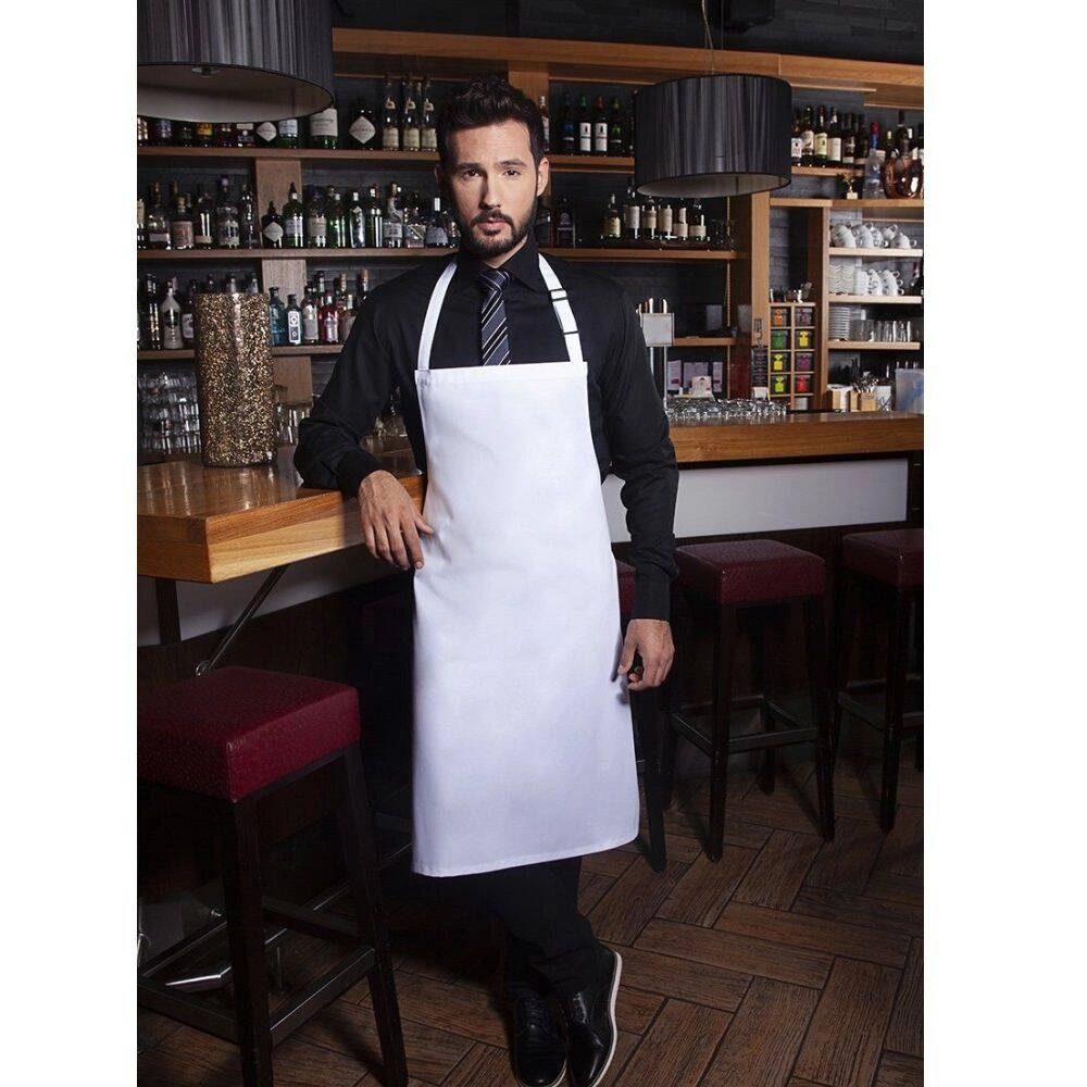 Základní kuchařská zástěra značky Karlowsky. Bílá barva. Vyrobeno v 65 % polyester / 35 % bavlna. . Diagonální vazba. Rozměry 75x90 cm. Zástěra s popruhy z materiálu zástěry se zesílenými napínacími body - popruh na krk se sponou pro nastavení délky cca 70 cm. Lze prát v pračce a čistit chemicky. Vhodné k žehlení.