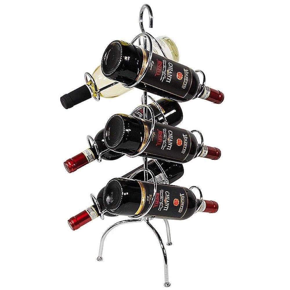 Stojan na 6 lahví vína o objemu 0,75 litru. Vyrobeno z chromované oceli