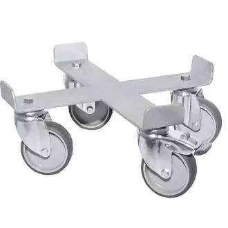 Podstavec pro kontejner na 4 kócky s jednou brzdou. Vyrobeno z nerezové oceli 18/10.
