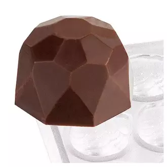 Forma na čokoládu z polykarbonátu. Má 21 otvorů ve tvaru kosočtverce o průměru 2,5 cm a výšce 1,7 cm.