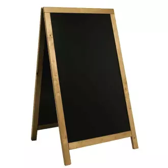 Volně stojící tabule z PVC o rozměrech 58x100 cm. Rám z lakovaného, tróy-laminovaného bukového dřeva - přírodní. Odolný vůči povětrnostním vlivům. Vhodná pro popisování křídou nebo fixy na vodní bázi