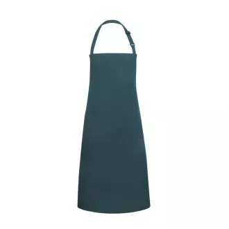 Základní kuchařská zástěra značky Karlowsky. Borovicově zelená barva. Vyrobeno v 65 % polyester / 35 % bavlna. . Diagonální vazba. Rozměry 75x90 cm. Zástěra s popruhy z materiálu zástěry se zesílenými napínacími body - popruh na krk se sponou pro nastavení délky cca 70 cm. Lze prát v pračce a čistit chemicky. Vhodné k žehlení.