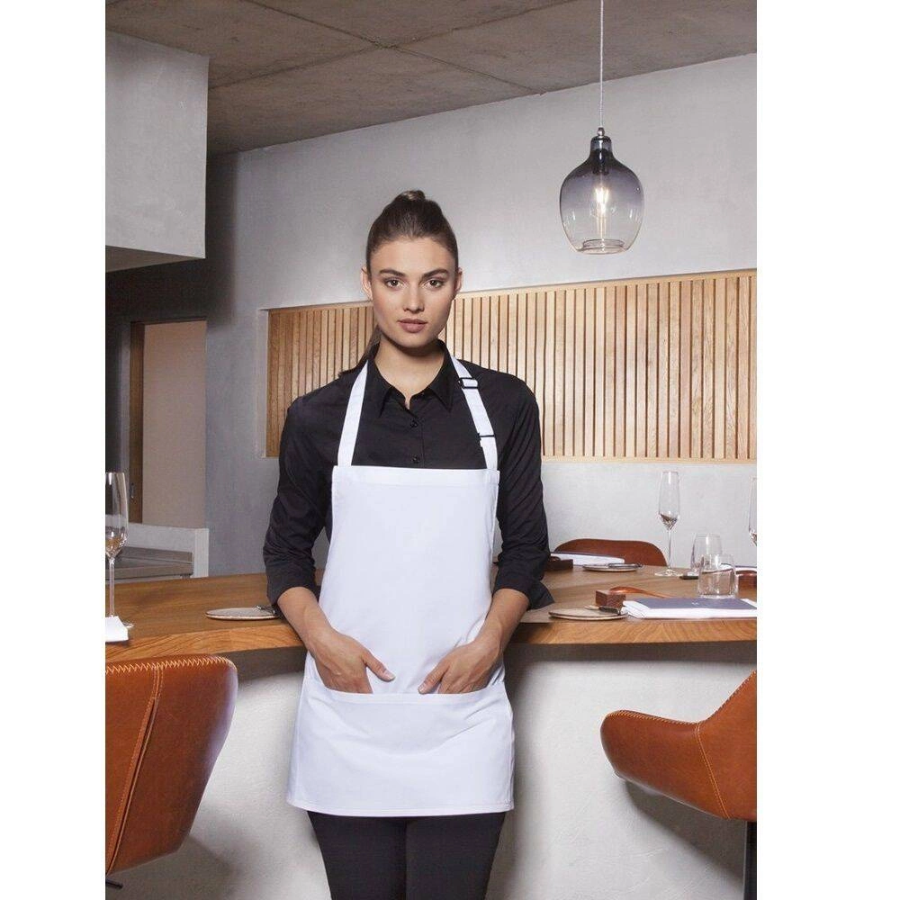 Popis k výrobku: Krátká zástěra 75 x 60 cm s kapsou a přezkou bílá