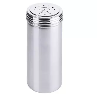 Solnička z leštěné nerezové oceli o objemu 600 ml. Víko se síťkou o průměru 2 mm.