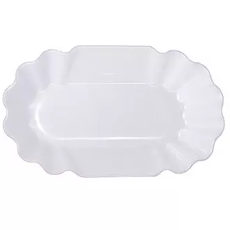 Servírovací mísa na hranolky. Vyrobeno z bílého polypropylenu. Lze používat v mikrovlnných troubách a myčkách nádobí.