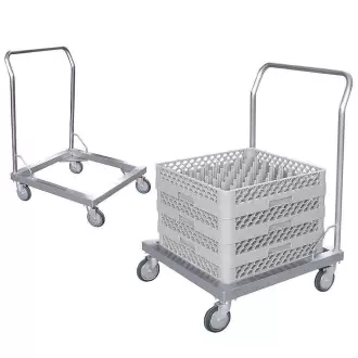 Přepravní vozík na koše pro myčky  o rozměrech 50x50 cm. Vyrobeno z nerezové oceli 18/10. Koše se prodávají samostatně.