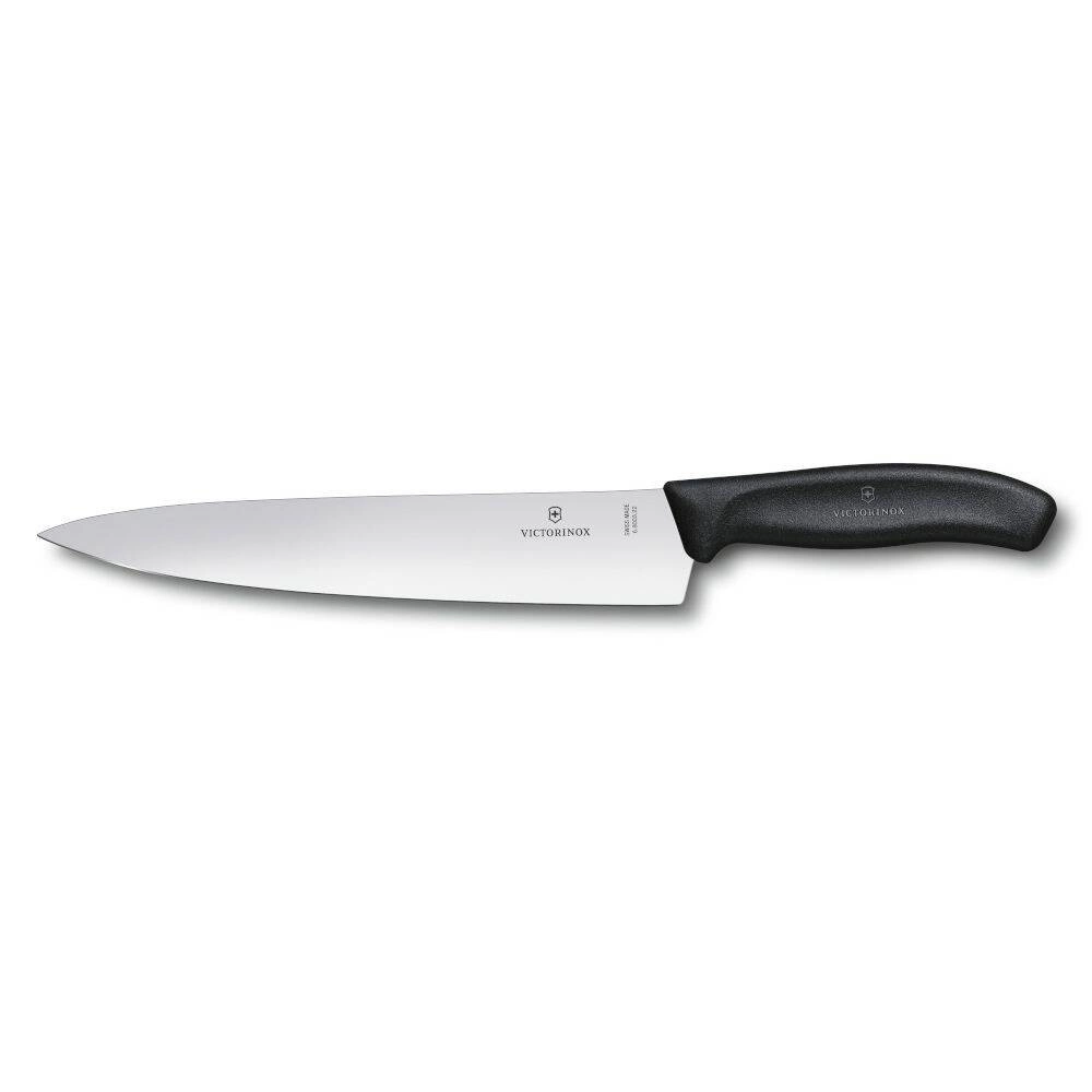 Univerzální kuchyňský nůž s černou rukojetí od společnosti Victorinox. Skvěle se hodí do domácí i profesionální kuchyně. Jsou vhodné pro všechny druhy masa, ovoce a zeleniny. Hladká čepel o délce 22 cm je vyrobena z válcované nerezové oceli se zvýšenou pevností, díky níž jeól dlouho ostrá. Rukojeť nože je vyrobena z plastu (TPE) v černé barvě. Díky ergonomickému tvaru rukojeti nůž dobře sedí v ruce, což zvyšuje pohodlí. Lze jej mýt v myčce nádobí.