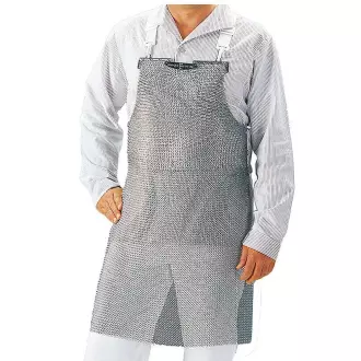 Nerezová zástěra 85x60 cm. . Křížové plastové zapínání. Určeno pro osobyób vysoké 174 až 186 cm. Třída ochrany II.