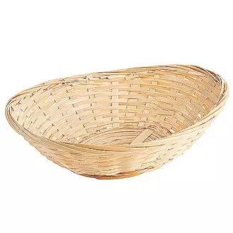 Oválný košík na pečivo z přírodního bambusu o rozměrech 23x17x7 cm.