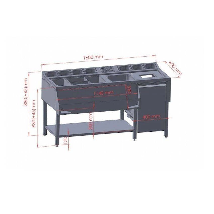 Barmańský stůl 7x GN 1/9 s postřikovačem FORGAST FG15411