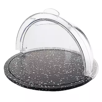 Podnos s víkem o průměru 40 cm. Vyrobeno z polyethylenu. Víko z průhledného polykarbonátu. Lze mýt v myčce