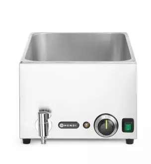 Stolní bemar s vypouštěcím kohoutkem Kuchyňská linka s kapacitou 1xGN1/1 z nerezové oceli. Zařízení je určeno k udržování vhodné teploty horkých pokrmů. Je přizpůsobeno pro použití gastronomických nádob GN1/1 s maximální hloubkou 15 cm. Pomocí speciálních podpěrných lišt lze používat nádoby GN menších rozměrů (např. GN 2/3, GN1/2, GN1/3, GN1/4, GN1/6 nebo GN1/9). Rádi vám pomůžeme s výběrem vhodné sady nádob s ohledem na množství a typ připravovaných potravin i specifika vaší provozovny.