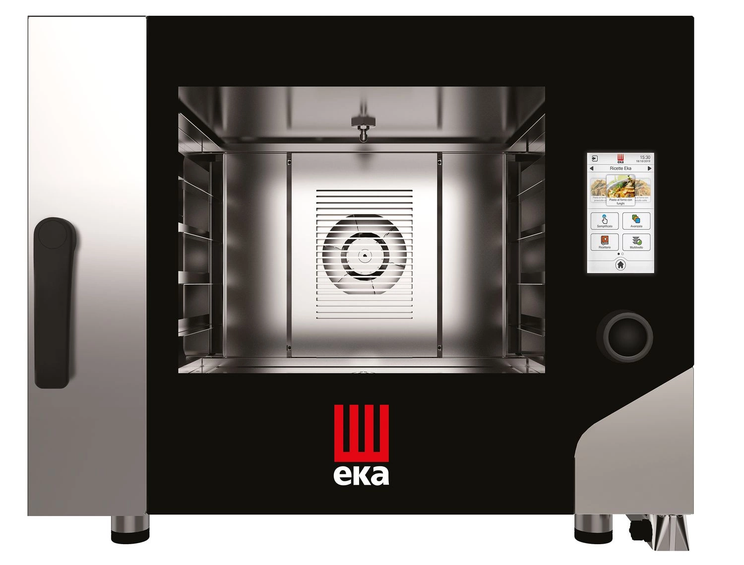 Elektrická kombinovaná parní trouba Pekárna s dotykovou obrazovkou Millenial. Je vhodný pro 4 zásobníky o rozměrech 600x400 mm. Trouba je vybavena 7 barevným a dotykovým ovládacím panelem, který umožňuje přesné nastavení parametrů pečení. Funkce Airflowlogic je řešení, kteréódíky přepracovanému designu odsavače zlepšilo cirkulaci vzduchu ventilátorem. Humilogic je nový zvlhčovací systém, který přivádí vodu přímo z ventilátoru. Tím je zajištěna vysoká úroveň vlhkosti, která snižuje spotřebu vody. Drylogic je rovněž inovativní systém. Ventilór řízený počítačem kontroluje výměnu vzduchu v komoře a odstraňuje nadměrnou vlhkost. Teplota uvnitř vařeného výrobku se měří pomocí bodové sondy. Víceúrovňové vaření umožňuje současnou přípravu různých pokrmů vyžadujících stejné podmínky, ale různou dobu vaření. Trouba vás informuje o tom, kdy je třeba pokrm vyjmout. Předehřev zahřeje komoru trouby na 30 stupňů, zatímco funkce Cooldown komoru ochladí, aby bylo možné zahájit další proces vaření. Systém čištění je automatický se 4 programy čištění: Eco, Normal, Intensive, Rinse. Nádoba USB usnadňuje nahrávání nových kuchařských receptů a údajů HACCP. Ideálně funguje také jako rozmnožovací komora a banketka. Kuchařka pojme až 500 receptóů po 10 krocích. Regulace teploty od 30 stupňů;C-270 stupňů;C.