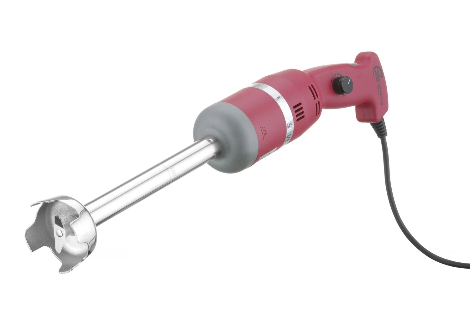 Ruční mixér Pro mixování potravin v hrncích bez nutnosti přerovnávání obsahu. Mixovací rameno dlouhé 25 cm. Vhodné pro hrnce a pánve do objemu 20 litrů. Nastavitelná rychlost od 2 500 do 15 000 otáček za minutu.