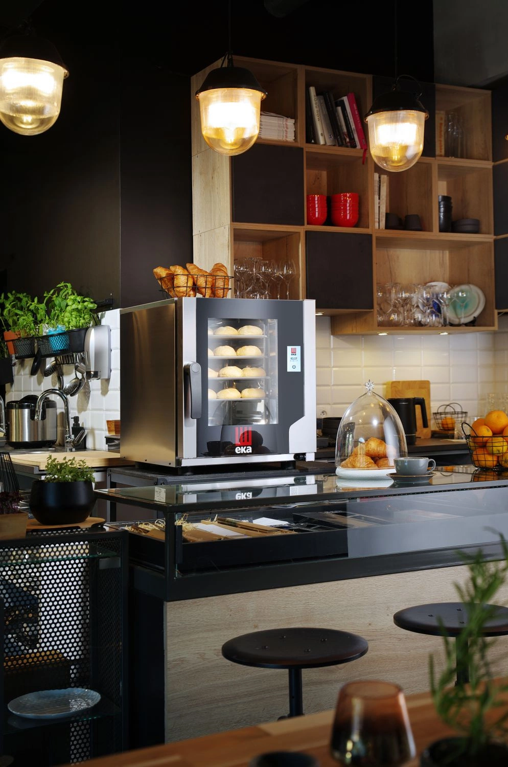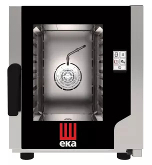 Evolution Nový kombinovaný parní stroj 5xGN 2/3 . Ovládání pomocí intuitivního, snadno použitelného dotykového panelu. Nastavitelný rozsah teplot 30-270oC. Nastavení stupně zamlžení v rozmezí 10-100 %. Možnost kontroly teploty uvnitř komory pomocí digitální sondy. Funkce s možností manuálního předehřevu komory Předehřev. Možnost nastavení zpoždění spuštění až o 24 h. Pára generovaná přímým rozstřikem vody na ventilátor. Celá komora trouby je vyrobena z vysoce kvalitní nerezové oceli AISI 304.