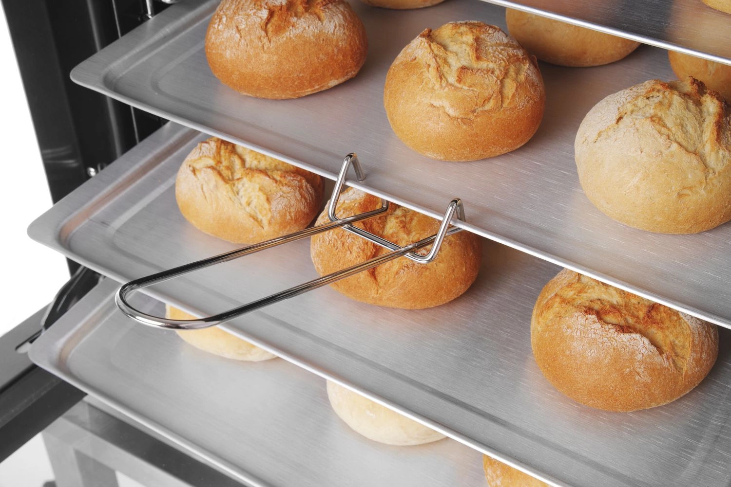 Konvekční trouba se zvlhčováním vzduchu Hendi model H90S. Ideální pro malá stravovací zařízení, provozovny rychlého občerstvení, pro přípravu nákypů, koláčů, pečené zeleniny a dalších pokrmů přímo z pece, stejně jako pro malé pekárny a obchody, které chtějí rozšířit svou nabídku o čerstvé a chutné pečivo. Díky malým rozměrům, napájení 230 V a úsporné spotřebě elektrické energie ji lze instalovat prakticky kdekoli. Přístroj se velmi snadno instaluje a obsluhuje.