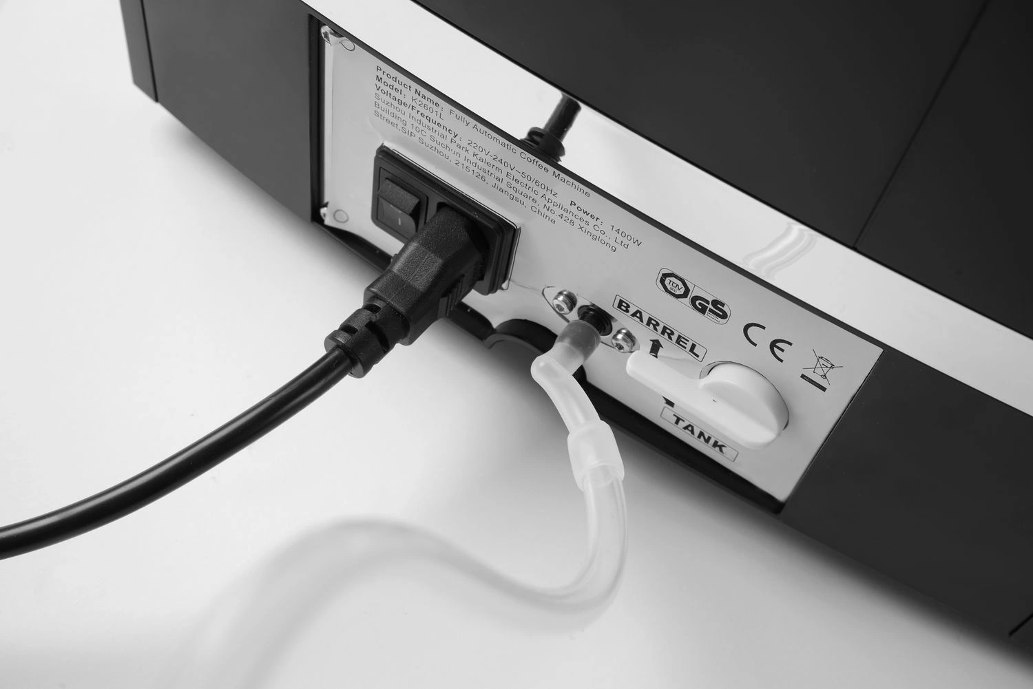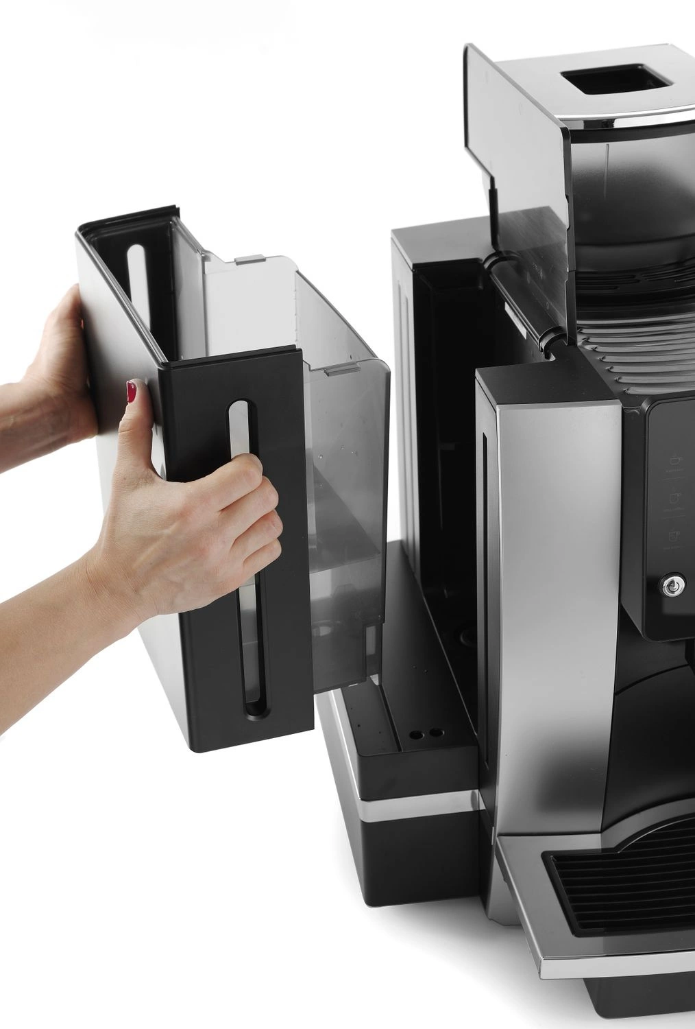 Integrovaná zvětšená nádoba na vodu a zeminu. Dotykový ovládací panel, digitální zobrazení funkcí, příkazů, chybós. Vestavěný mlýnek s nastavitelnou úrovní mletí kávy. Možnost použití již namleté kávy. Nádoba na čerstvou vodu: 6 l. Možnost připojení externí nádoby s větším objemem. Automatický čisticí program.