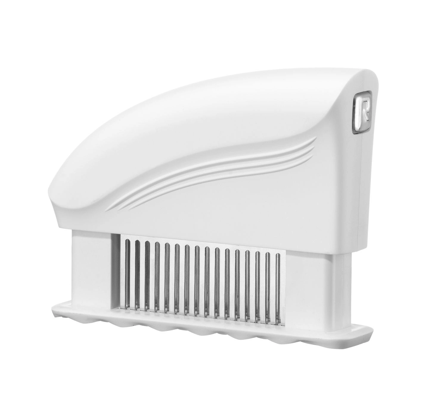 Křehčovač masa - malé zařízení určené ke křehčení syrového masa. Umožňuje účinně a bez použití chemických látek zjemnit a zkřehčit maso určené k pečení, smažení a grilování. Speciálně navržených 51 čepelí z nerezové oceli se při nárazu zasune do chlopně masa, rozřízne ji a jemně rozruší vlákna.