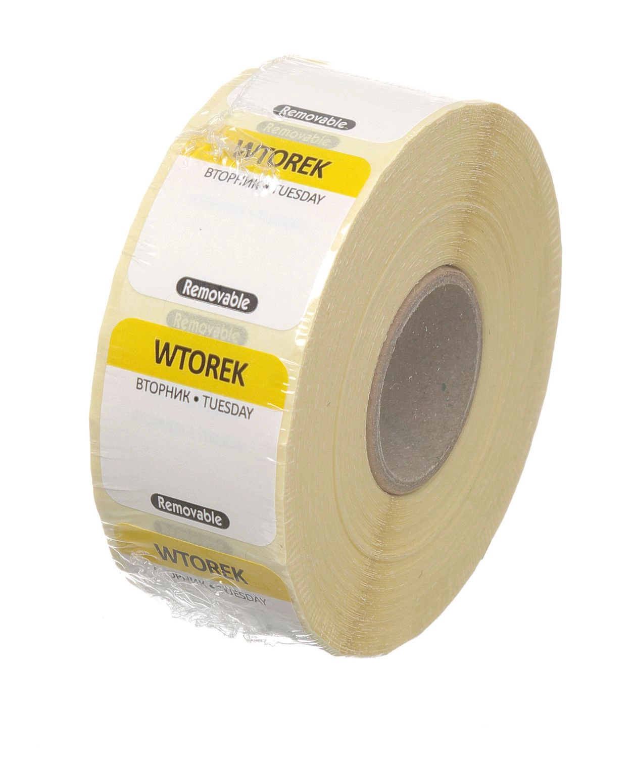 Opakovaně použitelná nálepka FOOD SAFETY se slovy "Tuesday". Štítek pro bezpečné označování potravin je jednoduchý a účinný způsob označování nádob s potravinami. Samolepky jsou snadno odstranitelné z plastových, kovových a skleněných povrchů. Každý den v týdnu je označen jinou barvou. Každá samolepka má prostor pro další označení. Samolepku odlepte před mytím nádob .