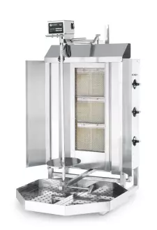 Plynový kebab z řady Profi Line. Kebab doporučujeme pro velké i malé cateringy. Maximální zatížení masem - 40 kg. Maximální rozměry masa - výška 51 cm, průměr 40 cm.