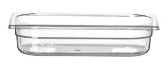 GN kontejner z 1/3 polykarbonátu o hloubce 6,5 cm. Vyrobeno z vysoce kvalitního průhledného polykarbonátu. Neabsorbuje příchutě ani pachy.