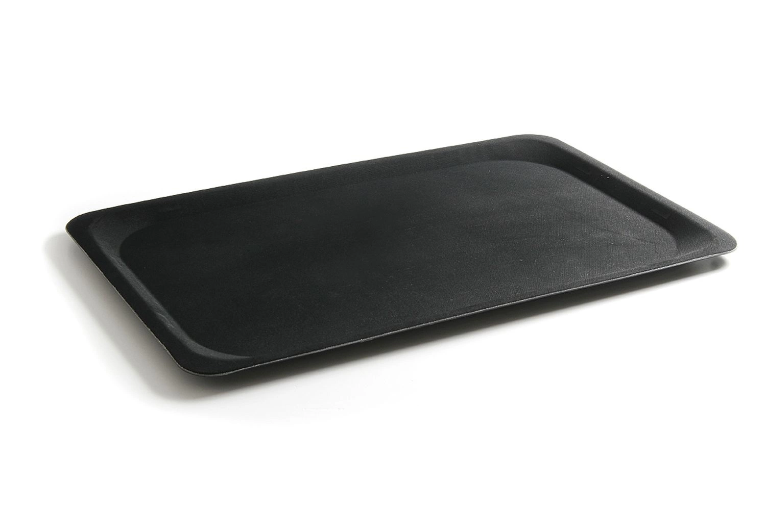 Protiskluzový polyesterový servírovací podnos, obdélníkový, ve standardu GN 1/1. Černá barva. Odolává velkému zatížení. Odolný proti nárazům a rozbití.