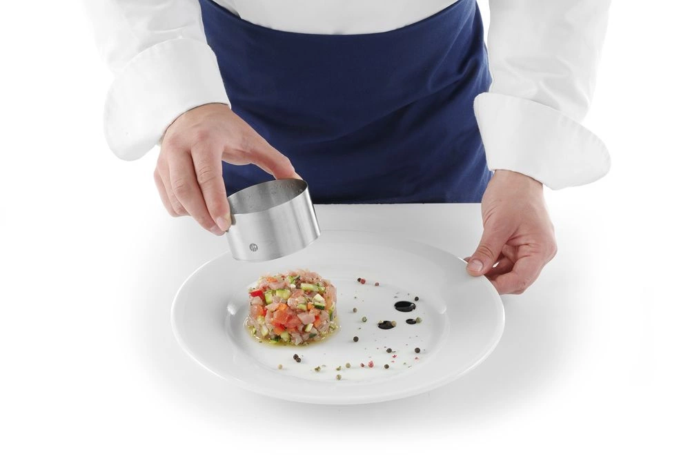 Kulatý okraj na pečivo a cukrářské výrobky o průměru 14 cm. Vyrobeno z nerezové oceli. Ideální pro tvarování dortů a pokrmů. Kulatý okraj z nerezové oceli o tloušťce 1,5 mm.