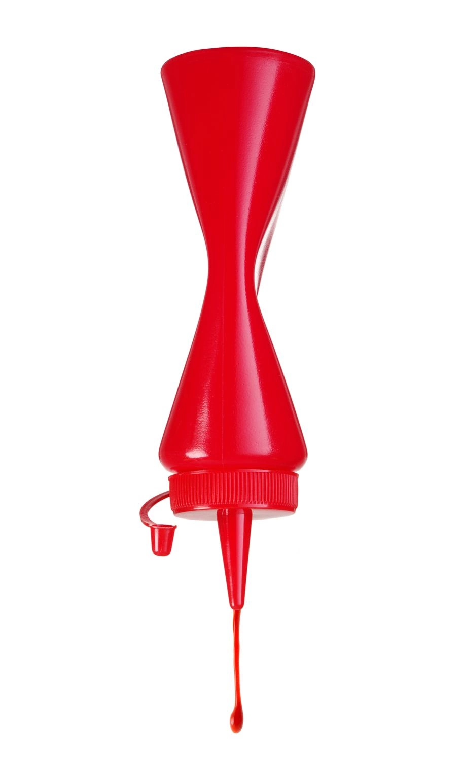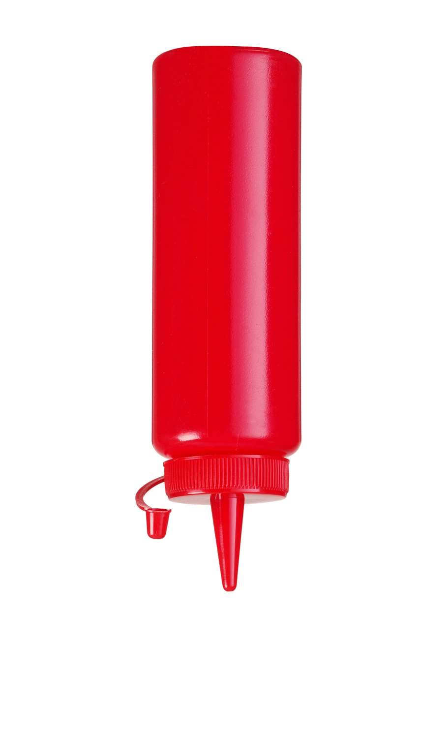 Dávkovač na studené omáčkyós se zátkou z polyethylenu. Barva červená.