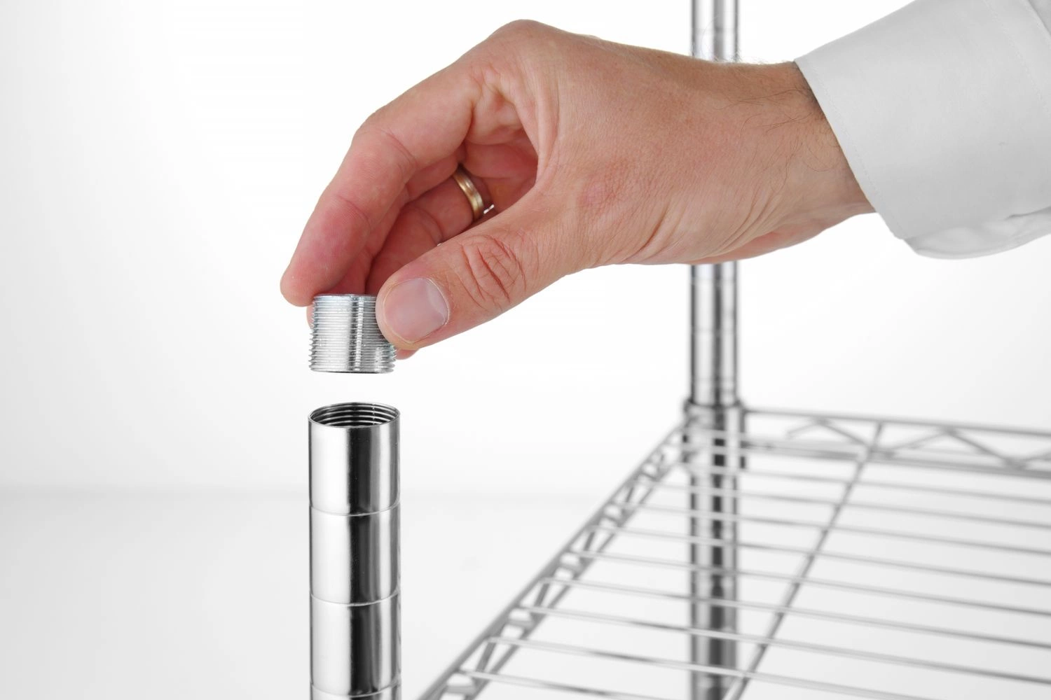 Chromovaný úložný regál Je vybaven pěti nastavitelnými nožičkami s maximální nosností 80 kg. Regál se dodává v plochém balení pro vlastní montáž.