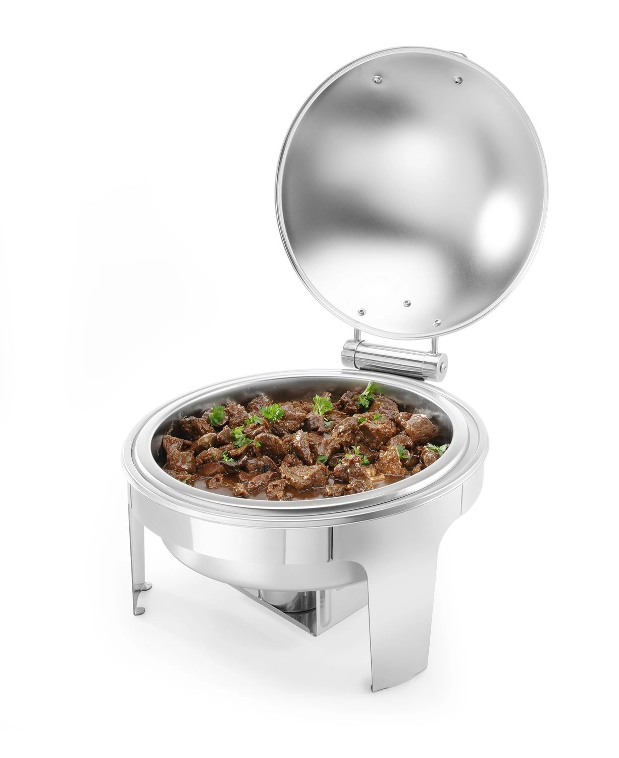 Kulatý stolní ohřívač pasty Profi Line ze satinované oceli. Víko je opatřeno pojistkou, která umožňuje ponechat víko otevřené v libovolném úhlu. Odnímatelné víko pro snadné čištění.