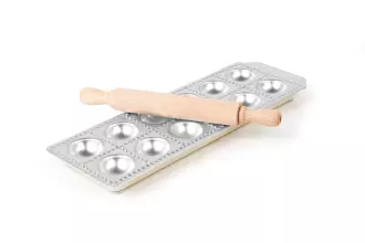 Kulatá forma na ravioli Vyrobeno z hliníkového tlakového odlitku. Podstavec z lakované oceli. Na gumových nožkách.