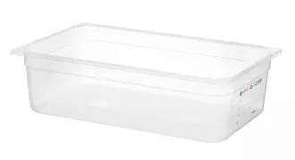 GN 1/1 Kontejner HACCP s hloubkou 15 cm z průhledného polypropylenu.  Vlisovaný štítek pro sledování procesu skladování. Nepohlcuje pachyóa příchutěóa.