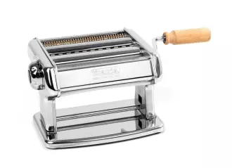 Stroj na těstoviny z chromované oceli, ideální pro přípravu čerstvých těstovin. Přístroj je vybaven kličkou a držákem pro upevnění na stůl.