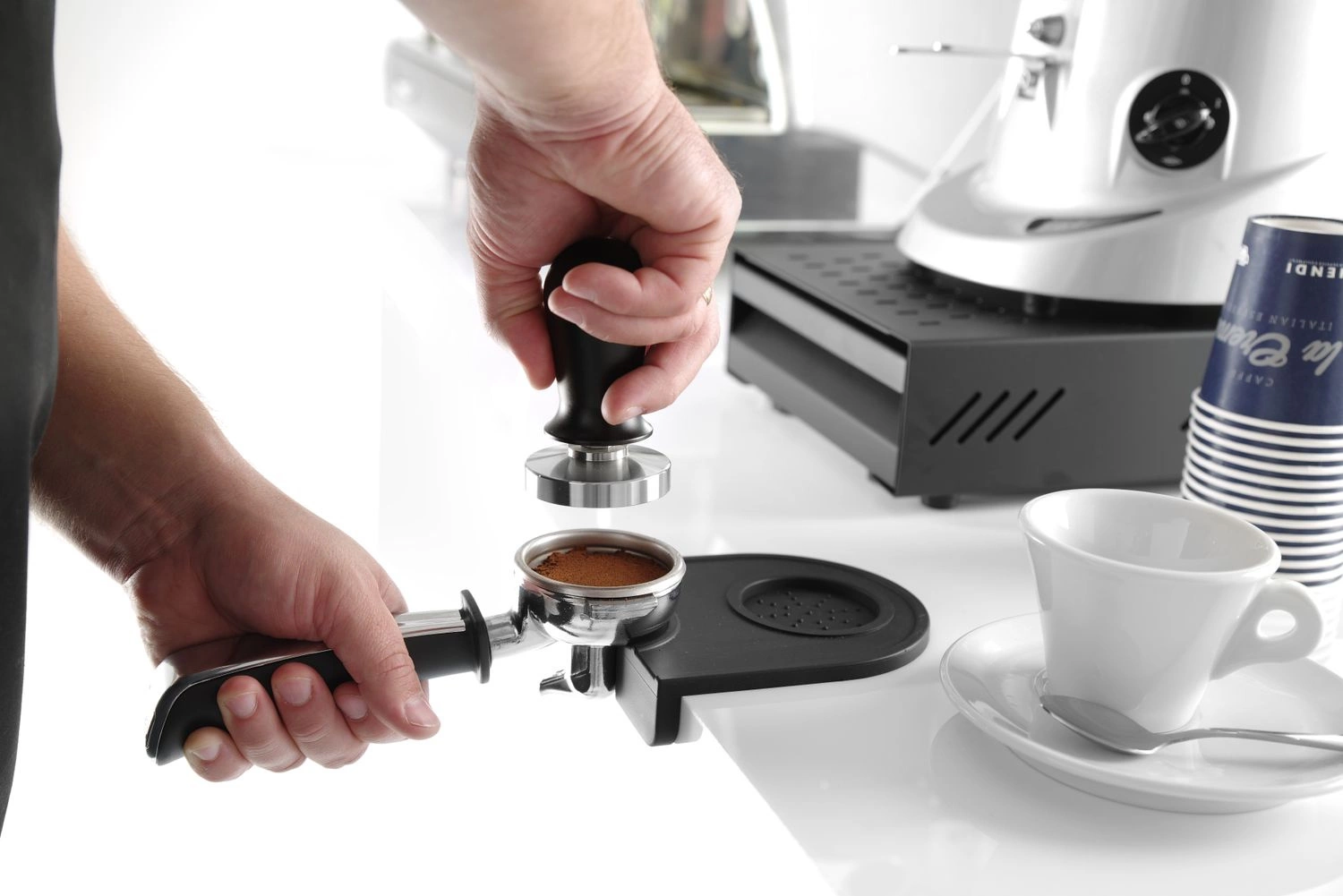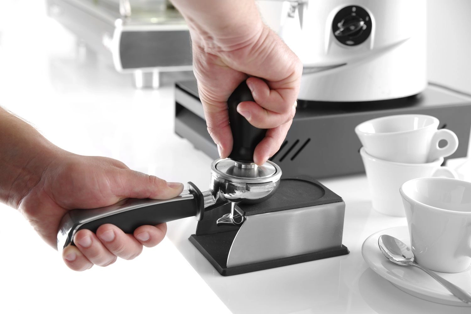Tamper dynamometru. Umožňuje kontrolu správného a reprodukovatelného našlehání kávy. Vhodný pro většinu baněk. Tamper z nerezové oceli s pružinou. Černá hliníková rukojeť. Nelze mýt v myčce nádobí.