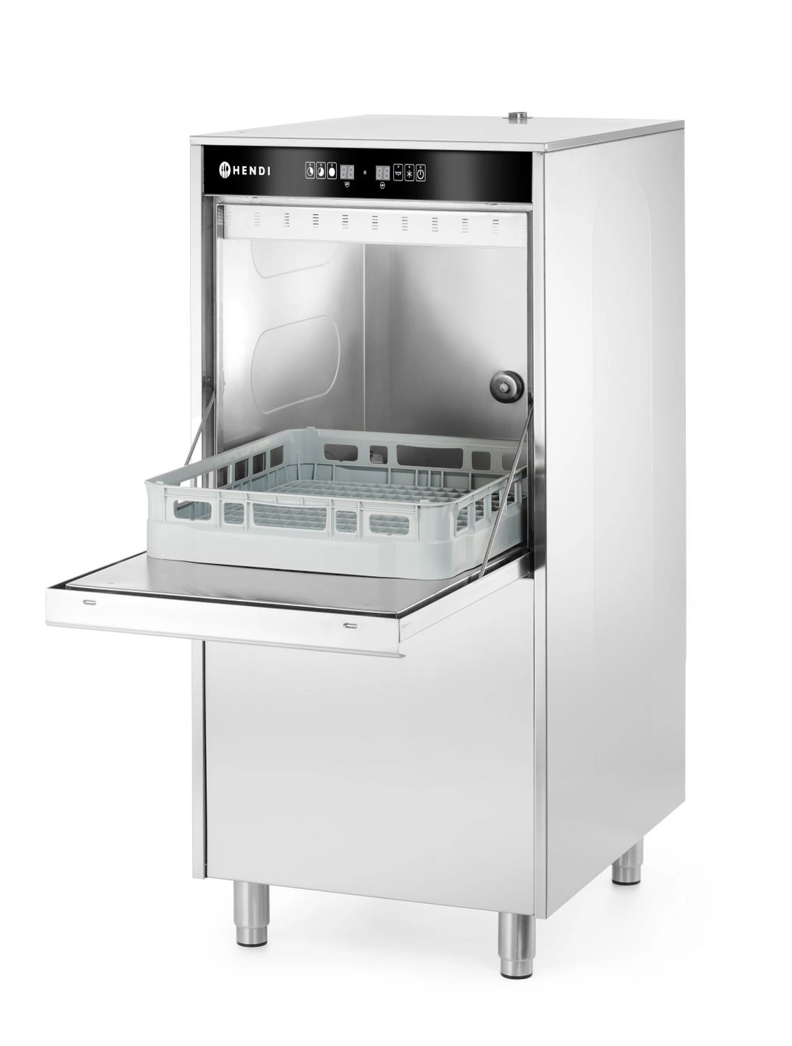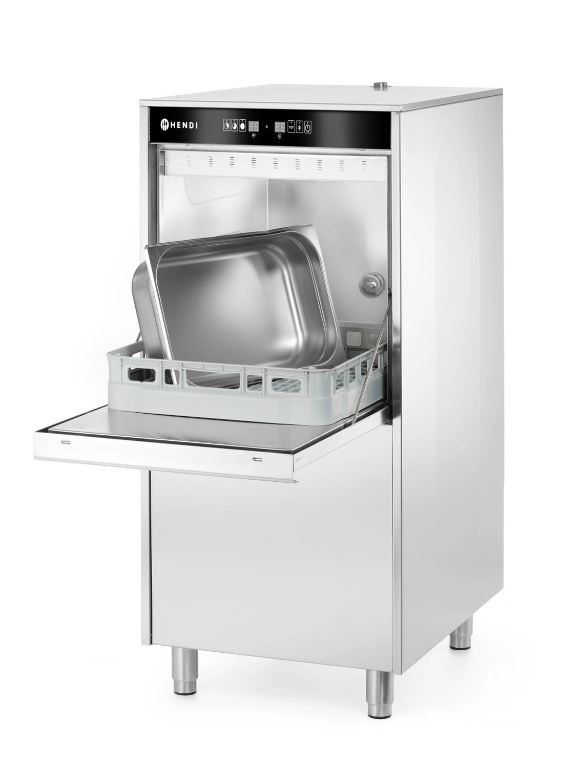 Mytí nádobí v myčce pro gastronomii se smí provádět pouze s použitím profesionálních chemikálií určených pro průmyslové myčky nádobí. Odtok vody z myčky je standardně gravitační. Pokud je odtok z místnosti namontován nad podlahou, měla by být myčka umístěna na podstavci. Vyšší kvalitu čištění a ochranu proti usazování vodního kamene zajistí instalace úpravny vody.