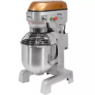 Planetární mixér značky YATO o objemu 25 l je určený k míchání lehkých těst, šlehání pěny a míchání náplní. Má tři pracovní rychlosti 110 / 200 / 420 ot./min., díky čemuž lze snadno přizpůsobit režim práce dle potřeby. Zařízení je navíc vybaveno bezpečnostním vypínačem, který automaticky přeruší provoz. Tělo z hliníku a oceli lakované v metalické stříbrné barvě je snadné na údržbu a čištění. Mísa a příslušenství jsou vyrobeny z nerezové oceli vhodné pro styk s potravinami.