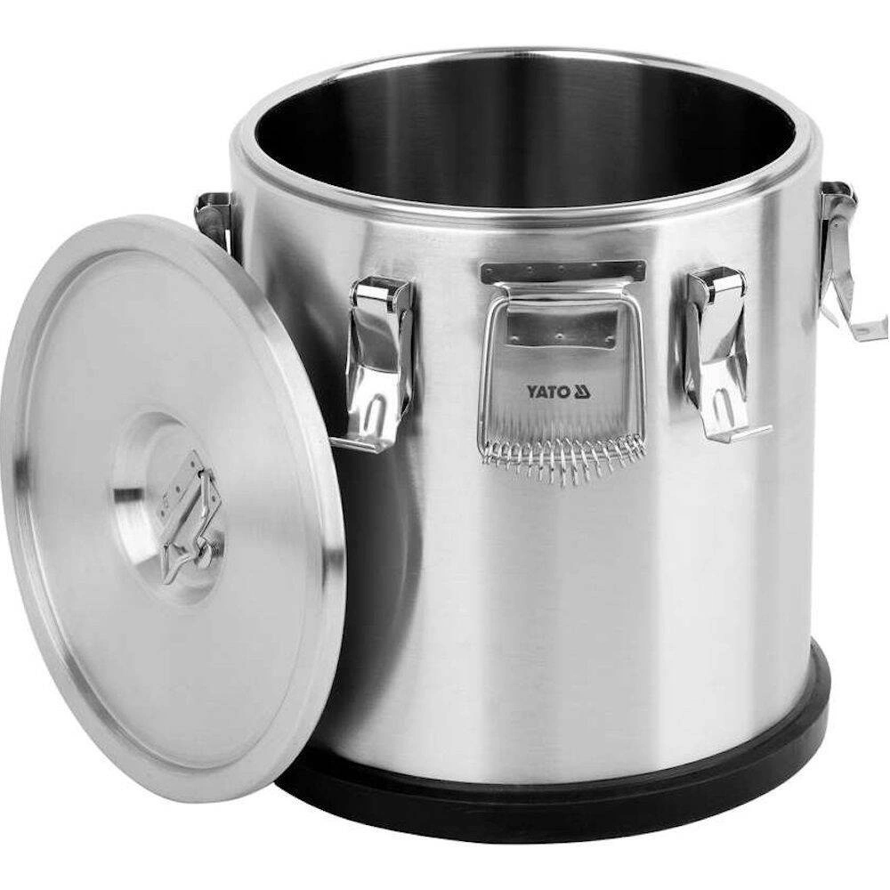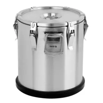 Termos na přepravu potravin značky YATO o objemu 20 l. Plášť i vnitřek jsou vyrobeny z vysoce kvalitní nerezové oceli. Velmi dobrá tepelná izolace díky prostoru mezi stěnami vyplněnému speciálním izolačním materiálem. Ztráta tepla v případě horkých pokrmů činí pouze 5 °C během 4 hodin, v případě studeného obsahu se teplota zvýší o 3 °C.