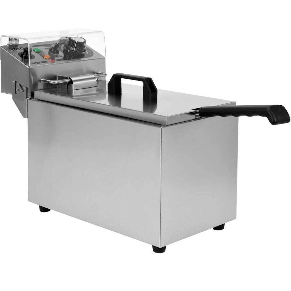 Jednokomorová fritéza o objemu 5L značky YATO. Je určena k fritování v hlubokém oleji: hranolků, masa, ryb, krokety, zeleniny. Nádrž fritézy má celkový plnicí objem 8L. Minimální hladina oleje je 3,2L a maximální 5L.