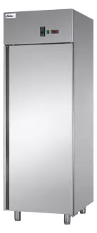 Jednodveřová chladicí skříň na cukrovinky z nerezové oceli od společnosti Arktic o objemu 413 l. Skříň je vyrobena z nerezové oceli AISI 304 a uvnitř je umístěno 10 nerezových skluzavek pro cukrářské nože/zásobníky o rozměrech 60x40 cm. Skříň má navíc 30 úrovníóumístění skluzavek, což vám dává velkou volnost při nastavování umístění skluzavek. Maximální nosnost skluzavek je 15 kg na pár. Polyuretanová izolace o tloušťce 60 mm. Chladicí skříň má samozavírací dveře s možností změny směru otevírání. Zařízení je vybaveno digitálním termostatem s displejem. Statické chlazení podporované ventilátorem s regulací otáček. Teplotní rozsah jednotky se pohybuje od −2°C do 8°C.