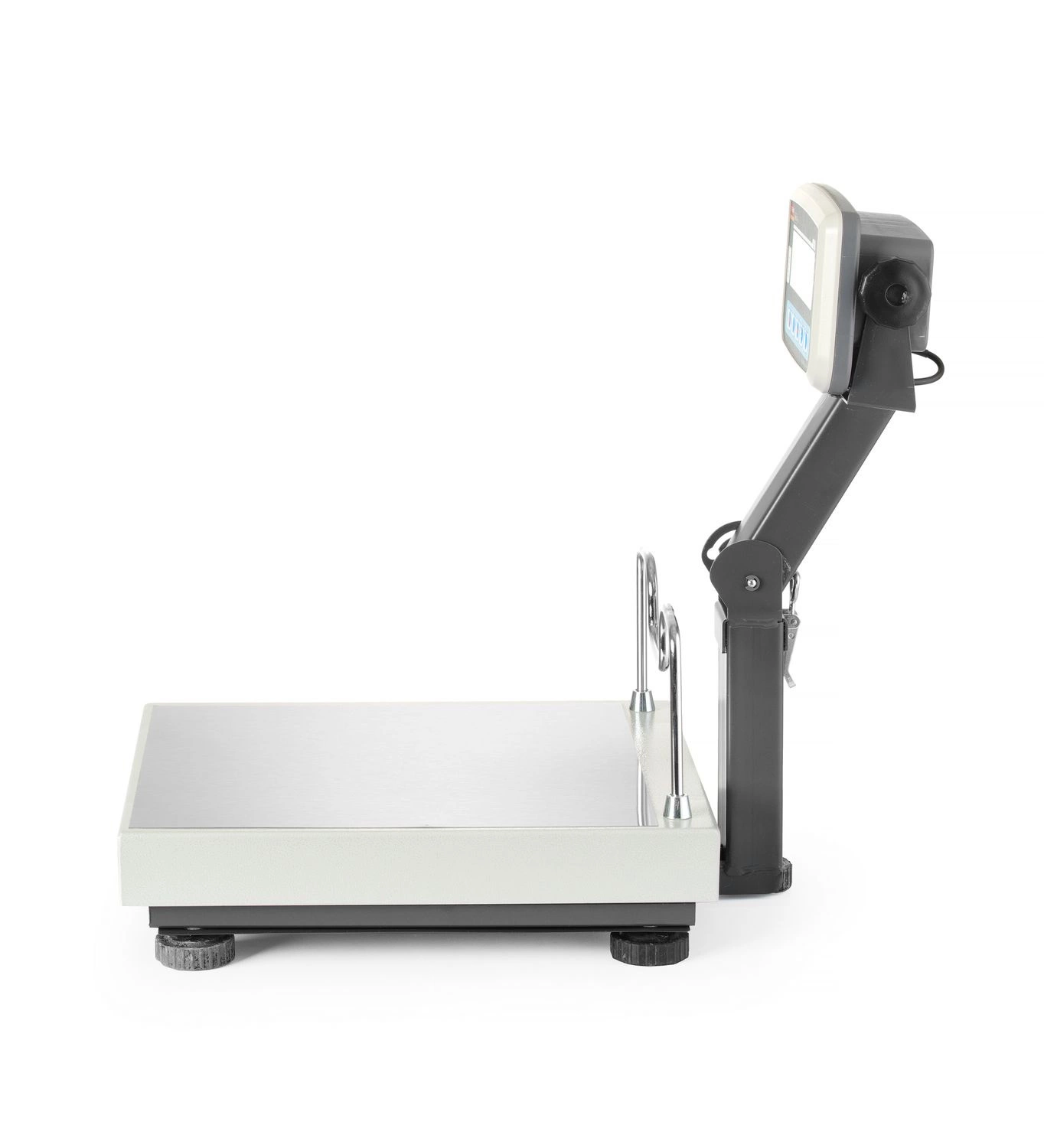Elektronická plošinová váha s LCD displejem, skládací rameno, legalizace a rozsah hmotnosti od 200 g do 60 kg. Ideálně se hodí pro použití v obchodě a průmyslu, zejména v oblasti skladování a dopravy. Dvoudílná váha do 30 kg má dělení 10 g, do 60 kg dělení 20 g. Na výložníku je umístěn šestimístný displej LCD. Váha má funkci nuly a tárování. Váha je napájena baterií 6 V, 3,2 Ah, která umožňuje až 100 hodin provozu. Součástí dodávky je také napájecí zdroj 7,8 V. Váha je vyrobena z elektrostaticky lakované oceli. Vážicí plocha má rozměry 35x40 cm. Váha má také zabudovanou vodováhu a 4 protiskluzové nós. Na zadní straně misky je připevněn ocelový okraj. Ráhno je vyrobeno z lakované litiny.