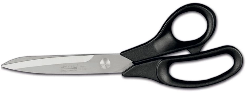 Kuchyňské nůžky Ambrogio Sanelli z nerezové oceli AISI 420, tvrdost 54-55 HRC. Čepele mají na ostří jemné zoubkování. Profilovaná rukojeť z nylonu.