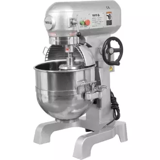 Planetární mixér značky YATO o objemu 40 l je určený pro přípravu lehkých těst, šlehání pěny a míchání náplní. Disponuje třemi rychlostmi provozu 104 / 206 / 399 ot./min., díky čemuž lze snadno přizpůsobit režim práce podle potřeby. Zařízení je navíc vybaveno bezpečnostním vypínačem, který automaticky přeruší provoz. Tělo vyrobené z hliníku a oceli, lakované v metalické stříbrné barvě, se snadno udržuje v čistotě. Mísa a další příslušenství jsou vyrobeny z nerezové oceli vhodné pro kontakt s potravinami.