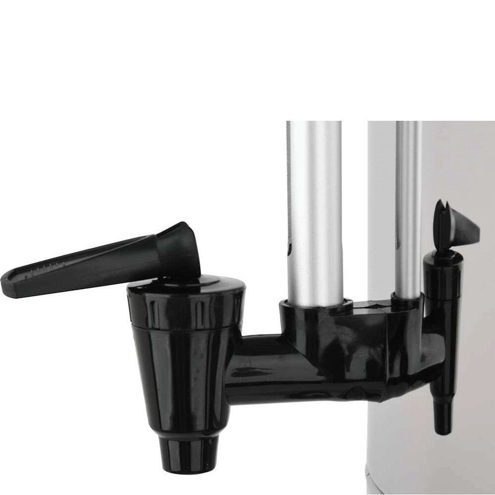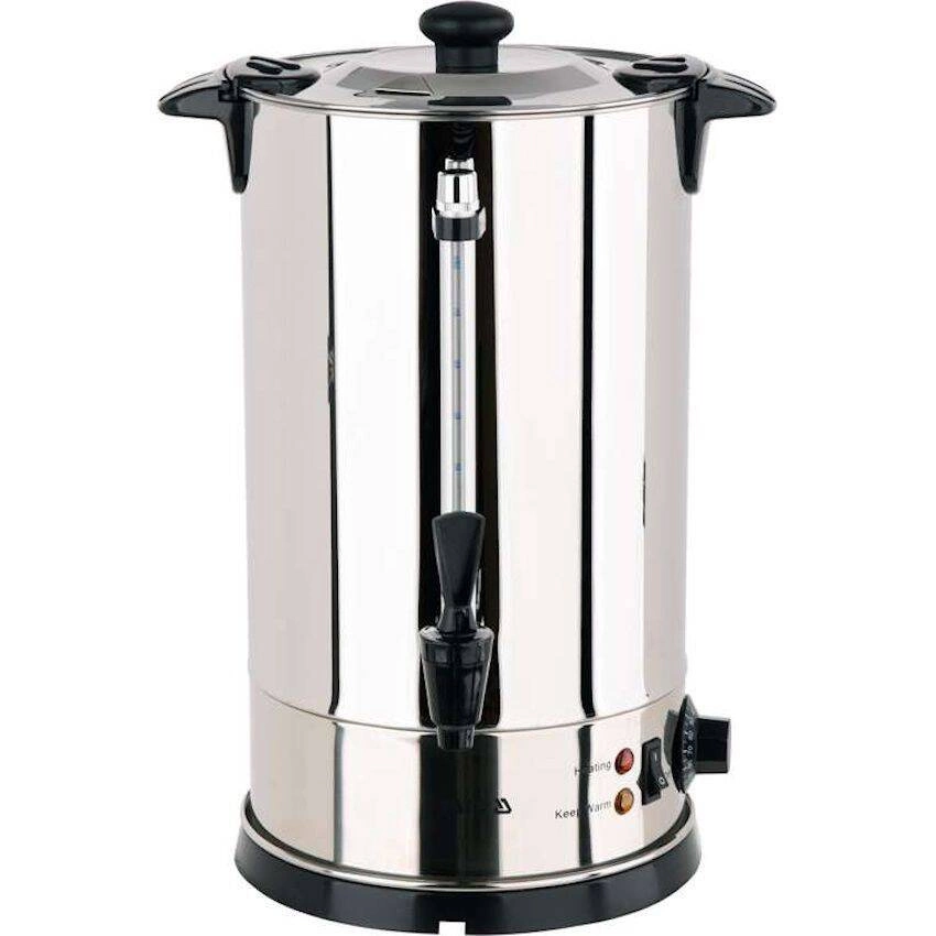 Úpravna vody YATO o objemu 8,8 l Vyrobeno z vysoce leštěné nerezové oceli. Nehřejivé rukojeti z nerezové oceli potažené plastem. Kryté topné těleso. Ochrana proti přehřátí a chodu nasucho. Teplotní rozsah spotřebiče je 30 až 110 stupňů Celsia. Víko se systémem TWIST-LOCK pro těsné uzavření. V krytu je umístěn ukazatel množství vody. Přístroj je vybaven kohoutkem se systémem proti odkapávání