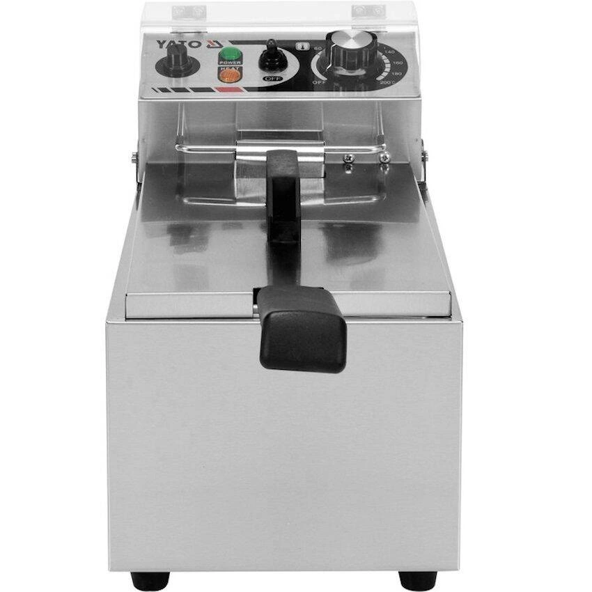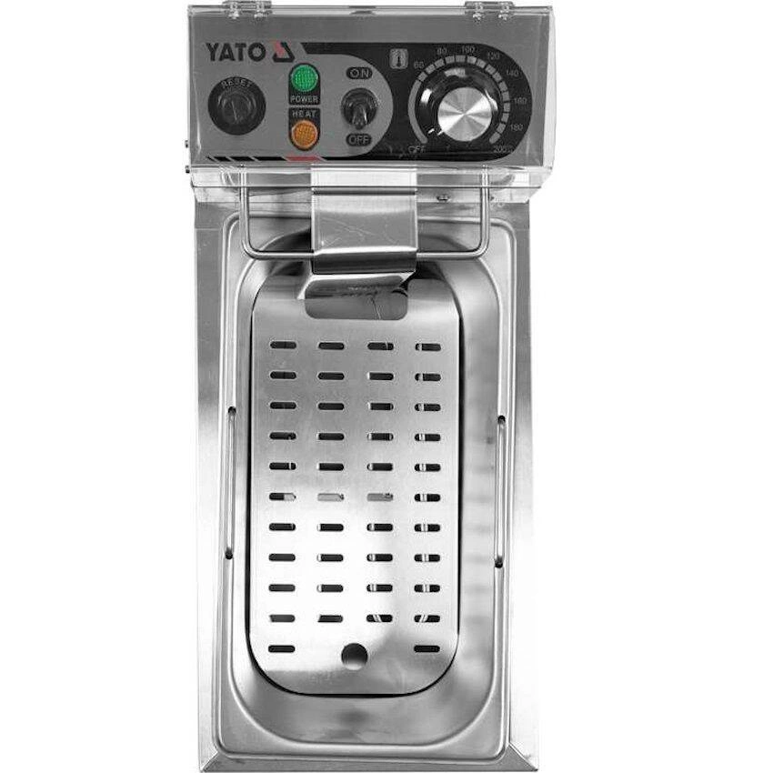 Fritéza s jednou komorou o objemu 3,5 l značky YATO. Je určena k fritování v hlubokém tuku: hranolek, masa, ryb, krokety, zeleniny. Nádrž fritézy má celkový plnicí objem 6 l. Minimální hladina oleje je 2,5 l a maximální 3,5 l.