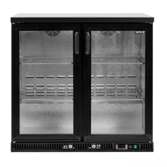 Chladnička prosklená dvoudveřová pro skladování a vystavování lahví. Celkový objem 227 l. Plášť je vyroben z práškově lakované oceli v černé barvě. Vnitřní stěny jsou z hliníku. Dveře jsou samozavírací z tvrzeného skla, mají zámek na klíč, který chrání před krádeží. Ve výbavě jsou 4 chromované police s maximální nosností 40 kg - při rovnoměrném zatížení. Chladicí agregát o výkonu 200 W využívá chladivo R600a, je určen pro provoz ve 4. klimatické třídě - při maximální okolní teplotě 30o C a relativní vlhkosti 55 %. Zařízení má elektronický ovladač s digitálním displejem teploty.