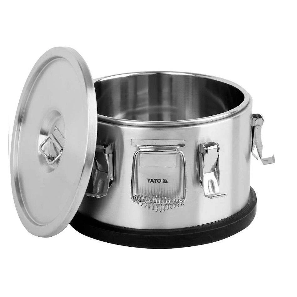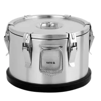 Termos na přepravu potravin značky YATO o objemu 10 l. Plášť i vnitřek jsou vyrobeny z vysoce kvalitní nerezové oceli. Velmi dobrá tepelná izolace díky prostoru mezi stěnami vyplněnému speciálním izolačním materiálem. Ztráta tepla v případě horkých jídel činí pouze 5 °C během 4 hodin, v případě studeného obsahu se teplota zvýší o 3 °C.