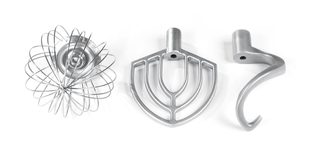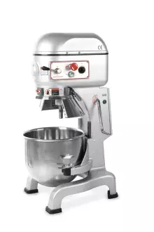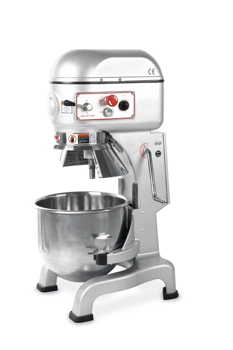 Planetový mixér model 20. . Lakované ocelové pouzdro. Nerezová mísa a bezpečnostní víko. Objem mísy 19 litrů. Digitální ovládací panel. Časovač až na 15 minut. 3 rychlosti: 142, 264 a 482 otáček za minutu.