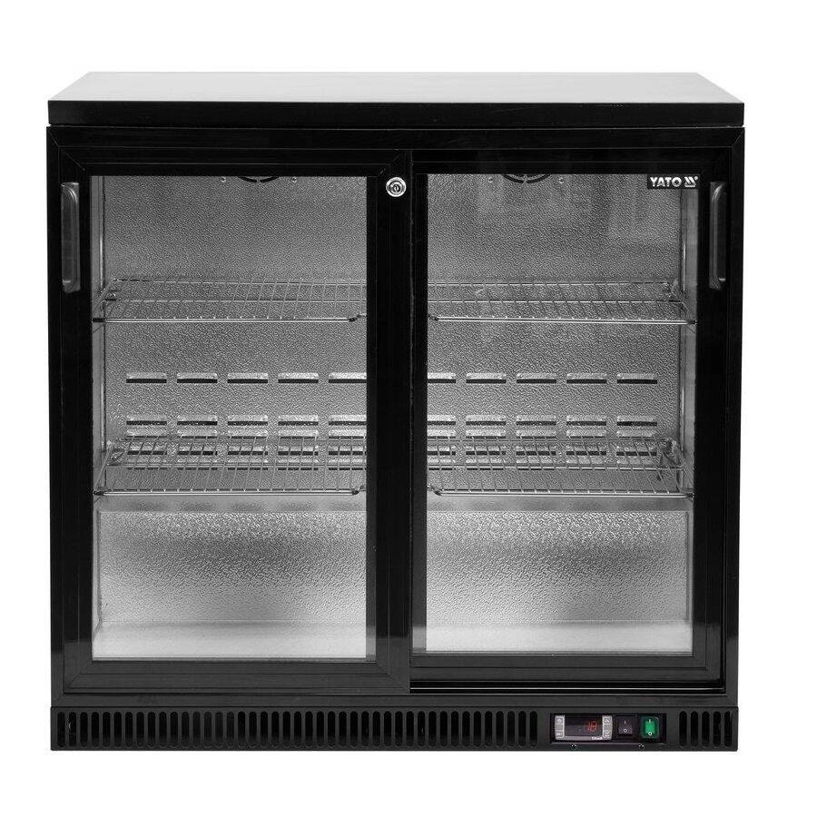 Chladnička prosklená s posuvnými dveřmi pro skladování a vystavování lahví. Celkový objem 227 l. Plášť je vyroben z práškově lakované oceli v černé barvě. Vnitřní stěny jsou z hliníku. 2 posuvné dveře z tvrzeného skla mají zámek na klíč, který chrání proti krádeži. Ve výbavě 4 chromované police s maximální nosností 40 kg – při rovnoměrném zatížení. Chladicí agregát o výkonu 200 W využívá chladivo R600a, je určen pro provoz ve 4. klimatické třídě – při maximální okolní teplotě 30o C a relativní vlhkosti 55 %. Zařízení má elektronický ovladač s digitálním displejem teploty.